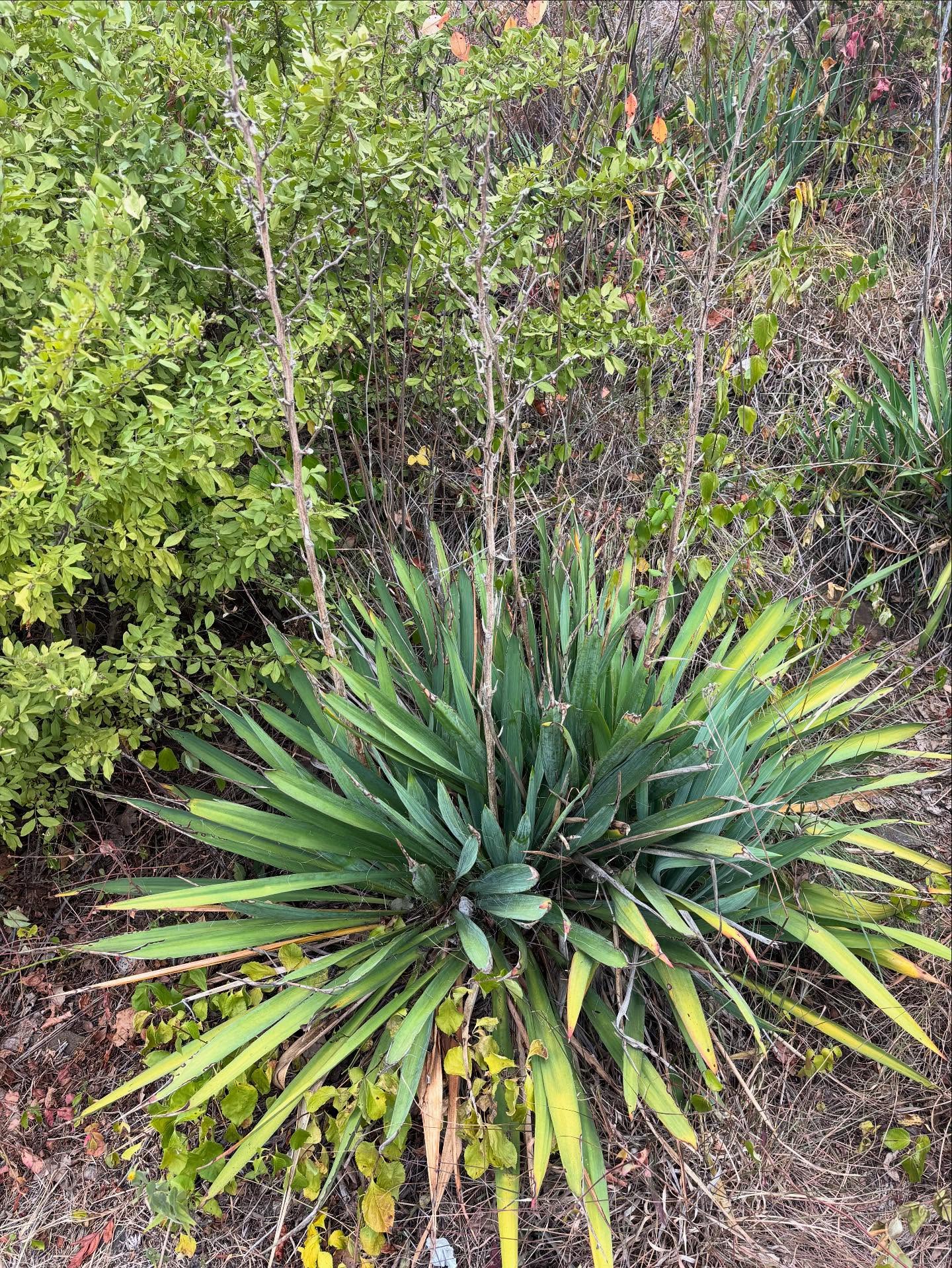 Common yucca, also known as Adam’s needle (Yucca filamentosa), is native to southeastern North America, but can be found wild in CT in sandy soils.